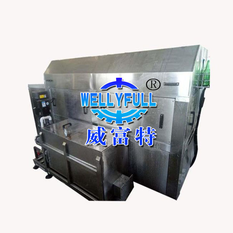 該機(jī)具有自動化程度高、清洗質(zhì)量好、破損率低、性能穩(wěn)定可靠、操作及維修方便。同時配合熱堿水浸泡工藝解決目前國內(nèi)飲料廠家普遍存在對回收瓶子難以清洗的問題。