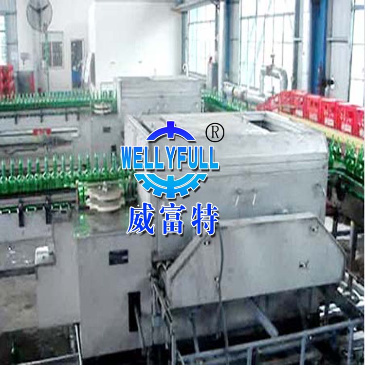 該機(jī)具有自動化程度高、清洗質(zhì)量好、破損率低、性能穩(wěn)定可靠、操作及維修方便。同時配合熱堿水浸泡工藝解決目前國內(nèi)飲料廠家普遍存在對回收瓶子難以清洗的問題。